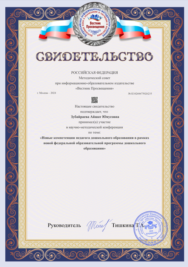 Свидетельство о публикации статьи "Развивающие пособия педагогов ДОУ" в сборнике "Акт