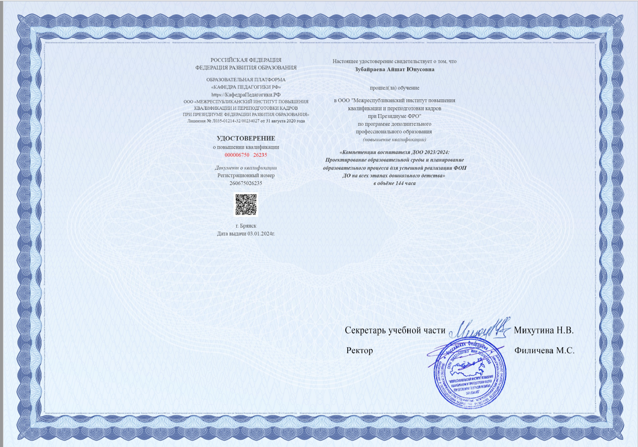 повышение квалификации "Компетенции воспитателя ДОО 2023/2024: Проектирование образовательной с