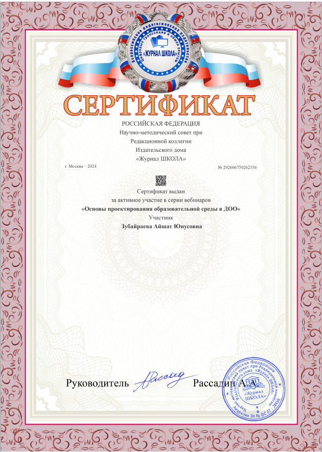 участие: в серии вебинаров на тему "Основы проектирования образовательной среды в ДОО"