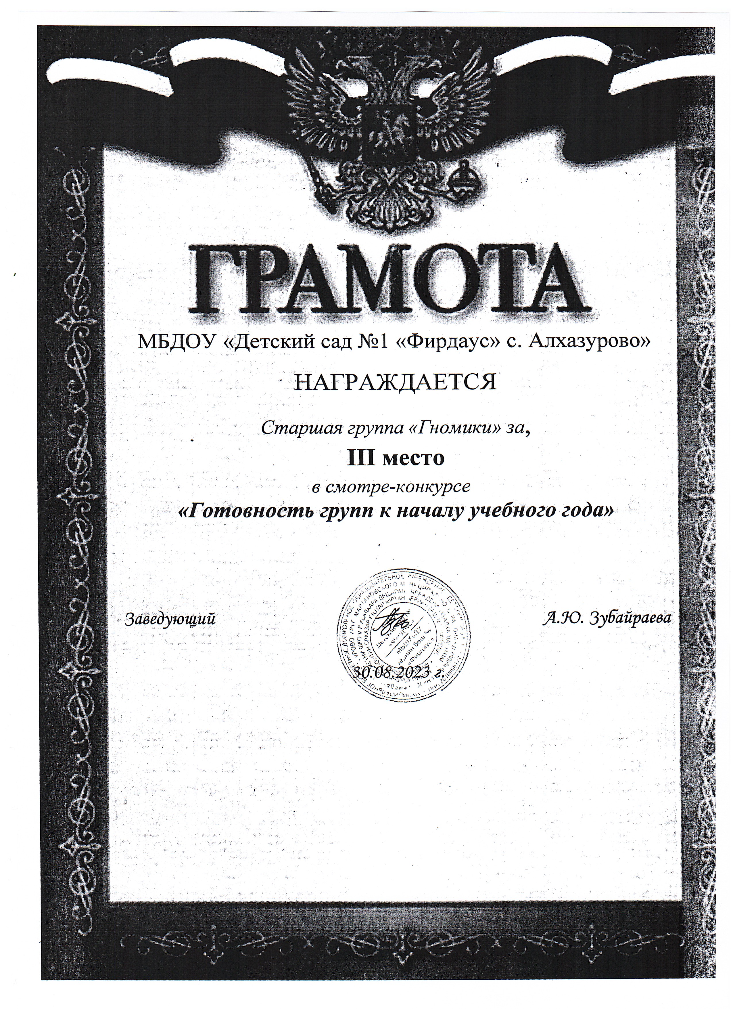 Конкурс "Готовность групп к началу учебного года" 3 место