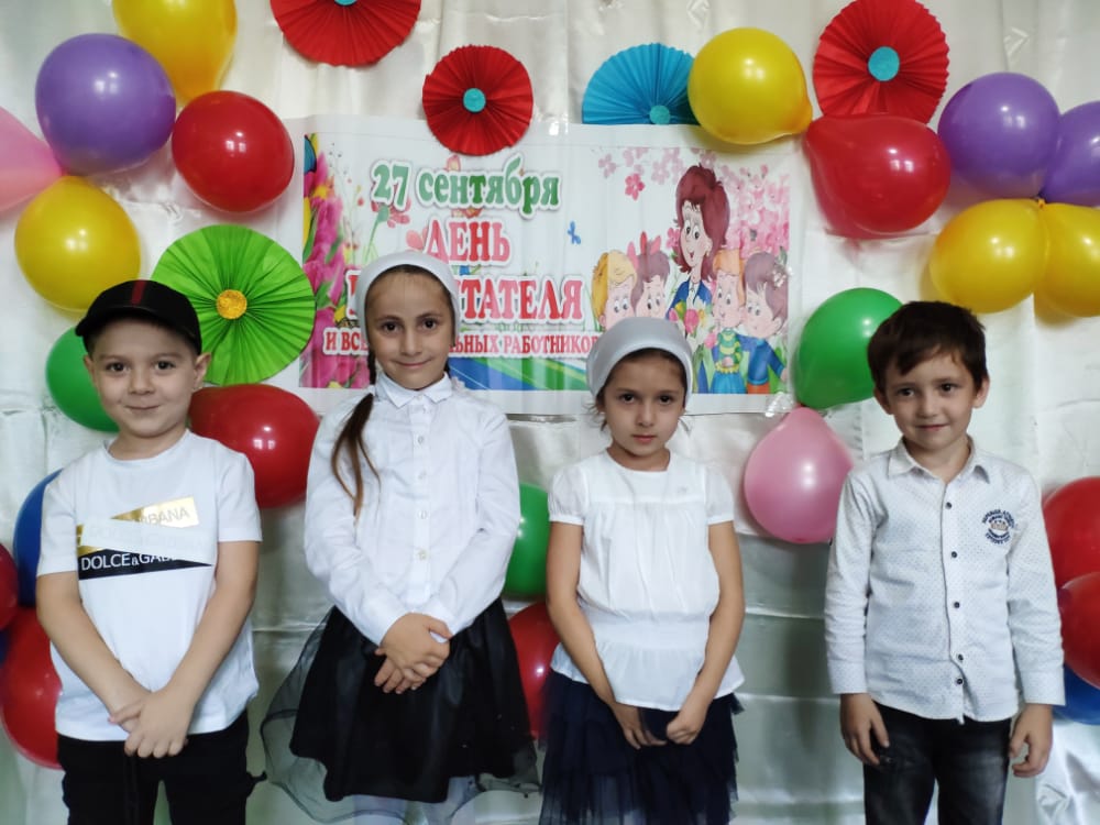 25.09.2020В последние дни сентября отмечается профессиональный праздник всех работников дошкольного образования – День дошкольного работника. Этот праздник ещё совсем молодой, но в нашем учреждении сложилась традиция его проведения. 25 сентября 2020 года в МБДОУ «Детский сад №1 «Фирдаус» с. Алхазурово Урус-Мартановского муниципального района» были проведены мероприятия, посвященные Дню воспитателя и всех дошкольных работников. Тематически был оформлен фасад здания детского сада. Было подготовлено и проведено праздничное мероприятия, где воспитанники читали стихи и пели песни посвященные своим любимым воспитателям. Дети всех групп выразительно читали стихи о труде воспитателя. Много теплых слов было сказано в адрес воспитателей от родителей. День работников дошкольного образования в нашем ДОУ был начат с благодарственных слов всем тем, кто отдаёт себя детям, вручением грамот и сувениров на память. Дети старались от души порадовать всех сотрудников детского сада. На протяжении всего утренника были исполнены песни про наш дружный детский сад, шуточные частушки для любимых воспитателей и их помощников.